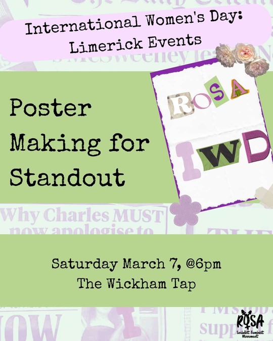 International Womens Day (IWD) in Limerick is being preceded by several events organised by the Limerick branch of the socialist-feminist group ROSA.